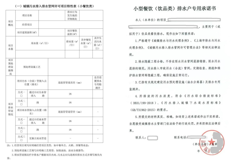 为防止违法排放的污水污染城市水环境,上海从事餐饮、工业、建筑、医疗、汽车清洗等13类排水活动的排水户须提交城镇污水排入排水管网许可申请表、排水管网图纸、排水预处理设施相关材料、水质达标排放承诺书等核心资料办理排水许可证,合法持证排水。在营商环境不断优化过程中,办证流程越来越简化,办证速度越来越快,针对饮品类低风险餐饮排水户,还进一步免掉了“一表一图一承诺”(申请表、排水平面图、水质达标承诺书)中的“图”,进一步减少了饮品类排水户自行筹备材料的诸多麻烦。