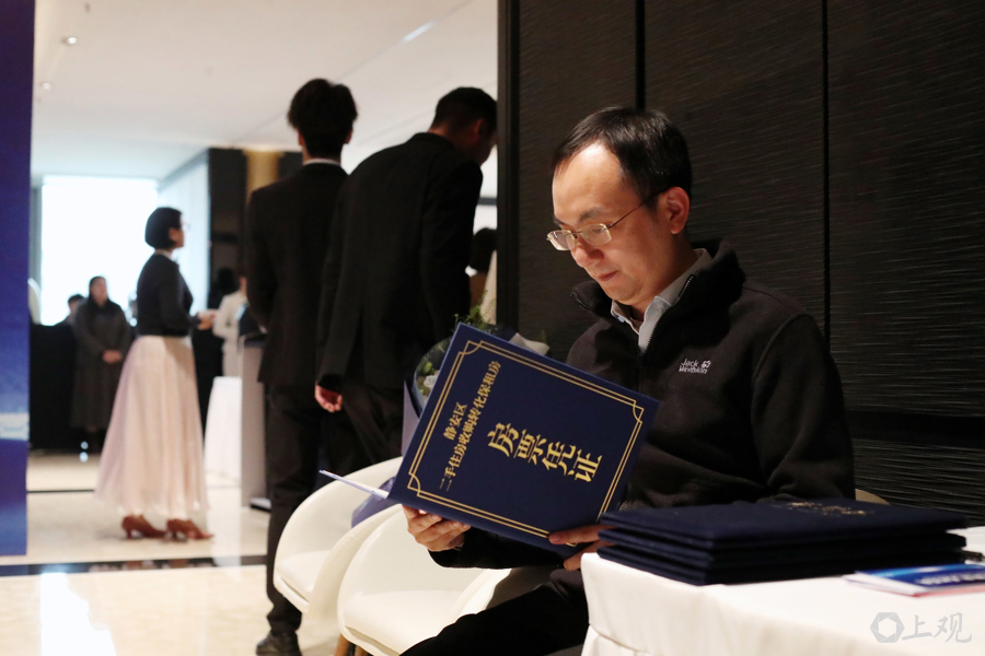 3月31日下午,上海市静安区居民施先生如愿拿到了本区二手住房收购转化保租房“房票凭证”。他表示,这是一个非常好的渠道,省了时间和精力。