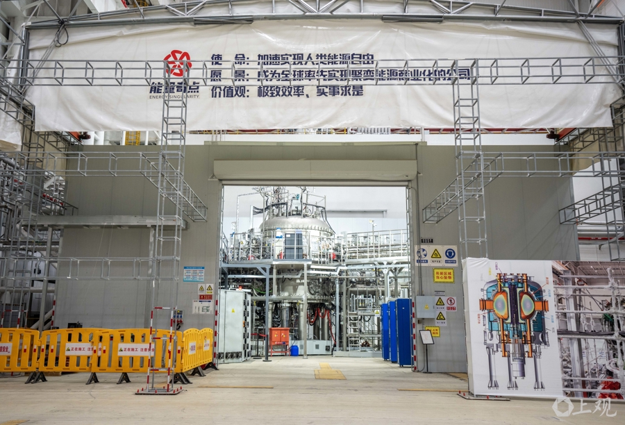 位于上海临港能量奇点实验厂房内的全球首台全高温超导托卡马克装置——“洪荒70”。